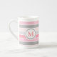 Pink and Grey Striped Monogram Bone China Mug
