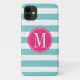 Pink and Light Blue Stripes Custom Monogram Case-Mate iPhone Case