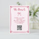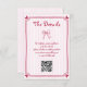 Cute pink Hand drawn scribble whimsical retro French style wedding vertical enclosure card. This adorable, vertically-orientated enclosure card brings a touch of whimsical retro French charm to your wedding. Featuring a hand-drawn magenta scribble design, it showcases playful illustrations of a bow and a heart-cornered frame. The word "Details" is playfully displayed on a pink and white striped background, and a convenient QR code is included for easy access to more wedding information.