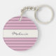 Pink and mauve striped design acrylic double-sided keychain that you can personalise with your name.