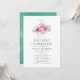 Trendy pink roses first holy communion invitation with mint glitter tropical foliage designed to be quickly and easily customised to your event specifics.