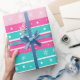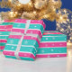 Pink and Mint Horizontal Striped Snowflake Wrapping Paper