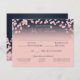 Twinkle gala pink bokeh and bow design over navy blue festive and colourful response card with meal choices.