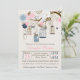 Pink and Navy Blue Hanging Cages Jars Baby Shower Invitation