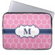 Pink and Navy Monogram Geometric Pattern Laptop Sleeve