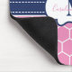 Pink and Navy Monogram Geometric Pattern Mouse Pad
