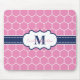 Pink and Navy Monogram Geometric Pattern Mousepad