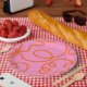 Pink And Orange Abstract Lines Brush Strokes Paper Plate
