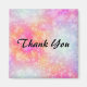 A soft and dreamy pastel coloured watercolor background in pink and orange. A delightful colour combination with white splatters and splotches that give it a cool misty water stained effect. This design has a cheerful whimsical mood. Text says thank you in a pretty brush curve font.