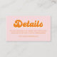 Pink and Orange Boho Retro 70s Wedding Details Enclosure Card