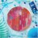 Bold abstract painting in shades of pink and orange.