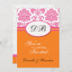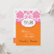 Chic and trendy, fully customisable and personalised pink and orange damask monogram wedding invitation. Let your style shine through these invitations. Matching save the date cards and magnets are available in this store.