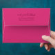 The return address text on these vibrant hot pink and orange abstract floral wedding or special occasion A-7 size envelopes is fully customisable. To change the text, use the personalise it feature. For more extensive changes to the text, including changing the font, font colour, font size, or text placement, use the customise it option. These envelopes are the perfect size to fit Zazzle 5"x7" invitations and greeting cards.
