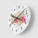 Pink and Orange Flower Bouquet on Marble Texture Round Clock