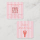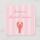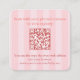 Whimsical hand-drawn red-orange lobster against a pink striped background for this invitation enclosure card design, which also features a QR code. You can use this to put the registry link, or the RSVP.