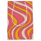 Retro style waves geometrical pattern illustration with shades of pink, orange and black lines stripes decoration for everybody who likes groovy retro style design and colour palette.