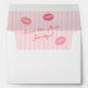 Modern colorful "Kiss the Miss Goodbye" envelope design featuring original hand-drawn elements. With a modern pink on pink striped background and hand-drawn kissy lips illustrations in coral and red, this invite card design hits some major trends. ALL colors of all elements can be customized (text, stripes, background, lips). All artwork in this invitation collection is my own original work (hand drawn and / or hand painted).