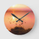 Pink and peach lake sunset round clock