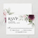 Romantic pink and plum watercolor rose florals and lush greenery make this wedding response card pop with style and charm. Personalise the text template with your required RSVP date. Other matching wedding products are available to coordinate with this invitation.