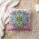 Pink and purple butterfly, flowers and bumblebees home decor pillow.