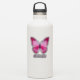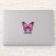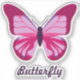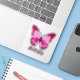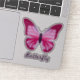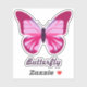 This contoured vinyl sticker features a pretty pink and purple butterfly graphic along with a separate sticker that has customisable text.