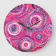 Pink and Purple Circles and Swirls Abstract Large Clock