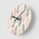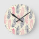 Pink And Purple Ethnic Feather Pattern Round Clock