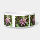 This awesome pet bowl features a detailed photograph of a beautiful pink passionflower with purple fringing and bright yellow buds. This pretty flower is found in tropical countries. The photo was taken using macro photography for a detailed result.