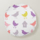 Pink and Purple Pastel Birds with Birdhouse Round Cushion