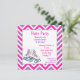 A cute multi-coloured birthday invitation perfect for any roller skating party. It features a pink and purple chevron pattern on the border. A little pair of cartoon skates is in the bottom left corner. The text is customisable in pink and purple.