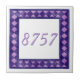 A hand drawn pink and purple chequered frame around a pink house number on a white background with dark blue outlines.