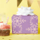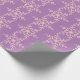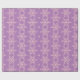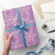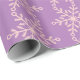 Pretty patterned holiday gift wrap has delicate pale pink snowflakes on a purple background.