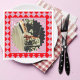 Add a sweet pop of retro charm to your celebration with this pink and red wedding napkin, designed to impress! The bold chequerboard border in rich red and playful pink frames your favourite couple photo, highlighted by a scalloped edge detail. The word “Cheers!” adds the perfect festive touch, with customisable text for names and your special date.