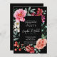 Pink and Red Flowers | Black Engagement Party Invitation