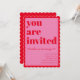 Pink and Red Modern 21st Scalloped Birthday Party Invitation