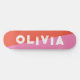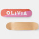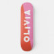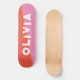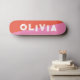 simple pink and red skateboard for him, for her or for them is your personalized name in a bold funky and grunge distressed lettering. Get the prefect abstract design for a teen birthday or Christmas present. Just write your own name for a custom skateboard.