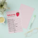 Create lasting memories with our 'Pink and Red Strawberry Wishes for Baby Card.' This charming card, adorned with sweet strawberry illustrations in vibrant pink and red, is perfect for guests to share their heartfelt wishes for the new baby. Ideal for a strawberry-themed baby shower, these cards allow friends and family to leave words of wisdom, hopes, and dreams for the little one, making them a treasured keepsake for the parents-to-be."