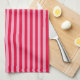 Bright, striped kitchen tea towel that brings a fresh, upbeat rhythm to everyday moments. Lightweight and absorbent, it slips into morning routines — drying dishes, wiping counters, and brightening up a hanging rail between chores. The vertical red and pink stripes read modern and cheerful, pairing easily with white or natural wood kitchens.