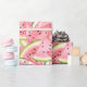 A cool pattern for summer, this design features a repeating pattern of watermelon slices in watercolor hues of pink, red, green and white. It makes a unique choice for wrapping a special gift.