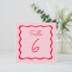 Pink and Red Wavy Handwritten Wedding Square Table Number