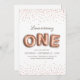 Invite friends and family to your little one's 1st birthday party with this blush pink and rose gold foil balloon birthday invitation!