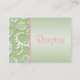 This sage green and pink floral damask enclosure card matches the wedding invitation and other items shown below.