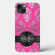 Pink and silver damask personalised monogram Case-Mate iPhone case
