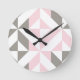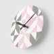 Pink and Silver Geometric ZigZag Round Clock