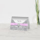 Elegant printed pink satin ribbon with diamond centre and silver diamond lace overlay thank you card.