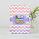 Cute Baby Carriage Pink Chevron Baby Book by ITD Colours Galore features our unique candy colour pink and white zig zag pattern with our signature texture in the background with a textured purple band and decorative centerpiece featuring a cute vintage baby pram holding a cuddly teddy bear. On the back the chevron pattern continues with a purple band that has a pattern of cute baby toys running along through it. Keep track of all your baby's first, starting with your chevron Pink and Stinky baby shower.