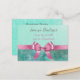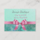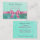 Pink and teal business card with White with Pink Bow & pink faux Glitter