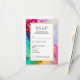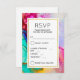 A wedding RSVP card with a fancy artistic abstract design. Watercolor painting with the colours mixing and mingling creating a nice flowing pattern. A white frame with a faux gold foil border layered over top with your personalised text written inside.