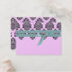 Pink and Turquoise Damask Table card featuring a faux ribbon on pearlescent card. Spaces are left for you to handwrite your guest names in or alternatively use a clear plastic label with guest names and table numbers printed on them.