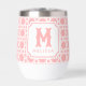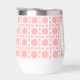 This stylish monogram wine tumbler design features a modern pink and white woven rattan cane pattern on the front and back. The front side has a notched pink frame with an initial in white.